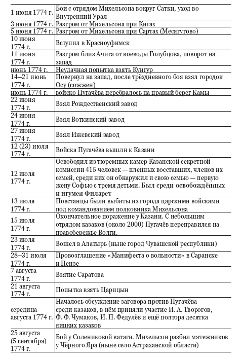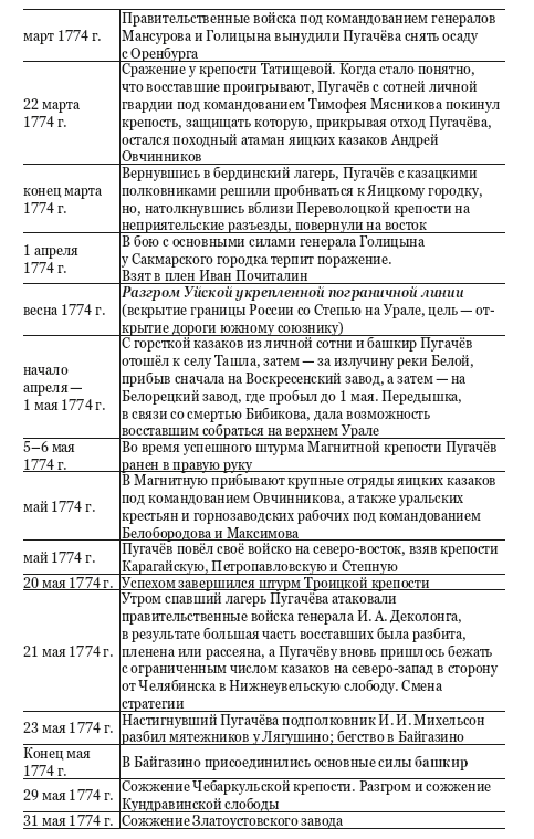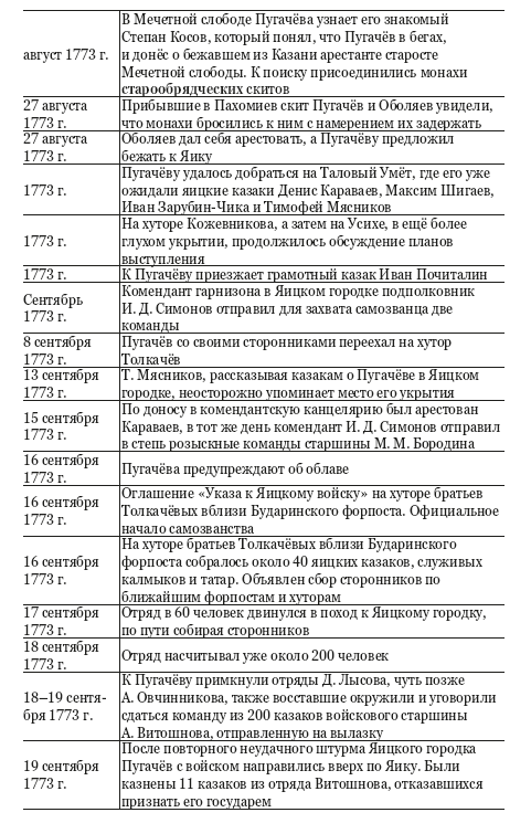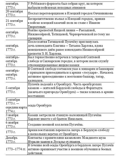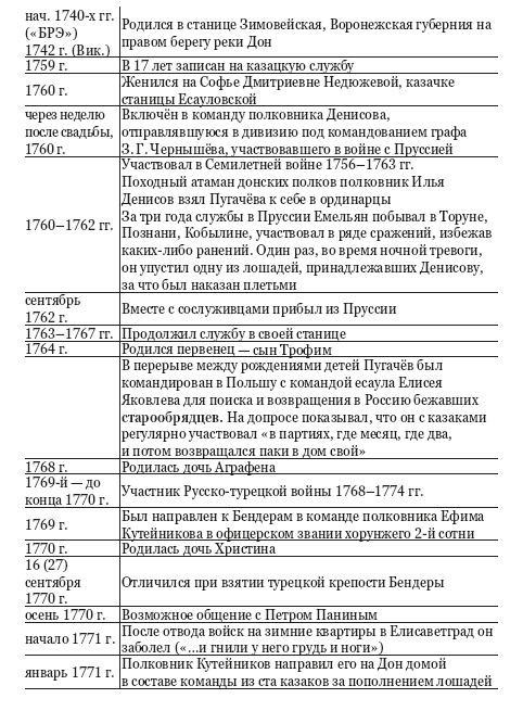 Таблица 1. Емельян Пугачёв. Биография[1]