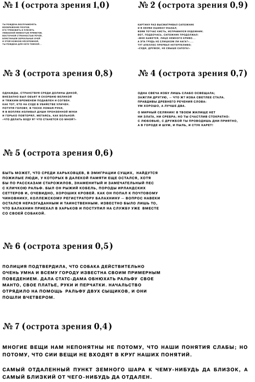 Тренировки на чтение мелкого шрифта полезны при близорукости. Особенно эффективны в этом случае тренировки на распознавание предназначенного для чтения вблизи мелкого шрифта на отдаленном от глаз расстоянии (рис. 5).