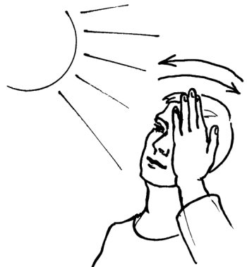 Поднимите голову и поворачивайте ее из стороны в сторону, быстро моргая глазами и смотря прямо на солнце. Будьте осторожны: прямо на солнце можно смотреть не более 3 секунд! Вы будете удивлены. Независимо от того, насколько нежны ваши глаза, это упражнение не причинит вам боли, а солнце не покажется слишком ярким (рис. 12)!