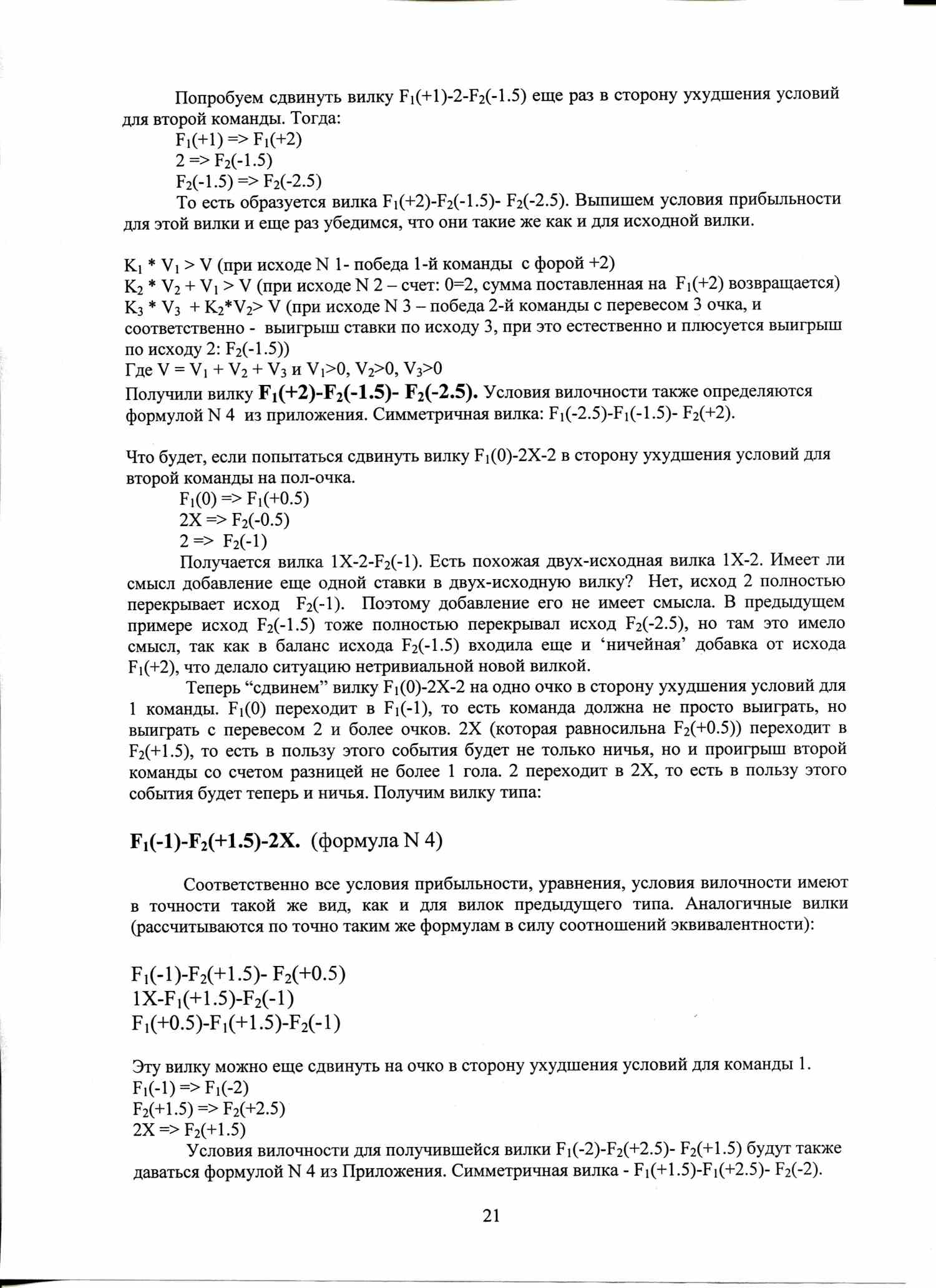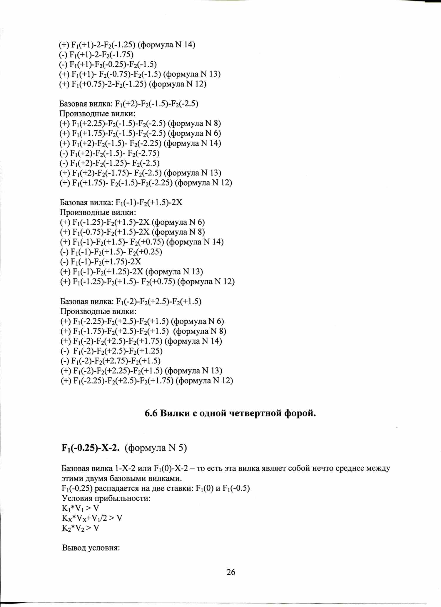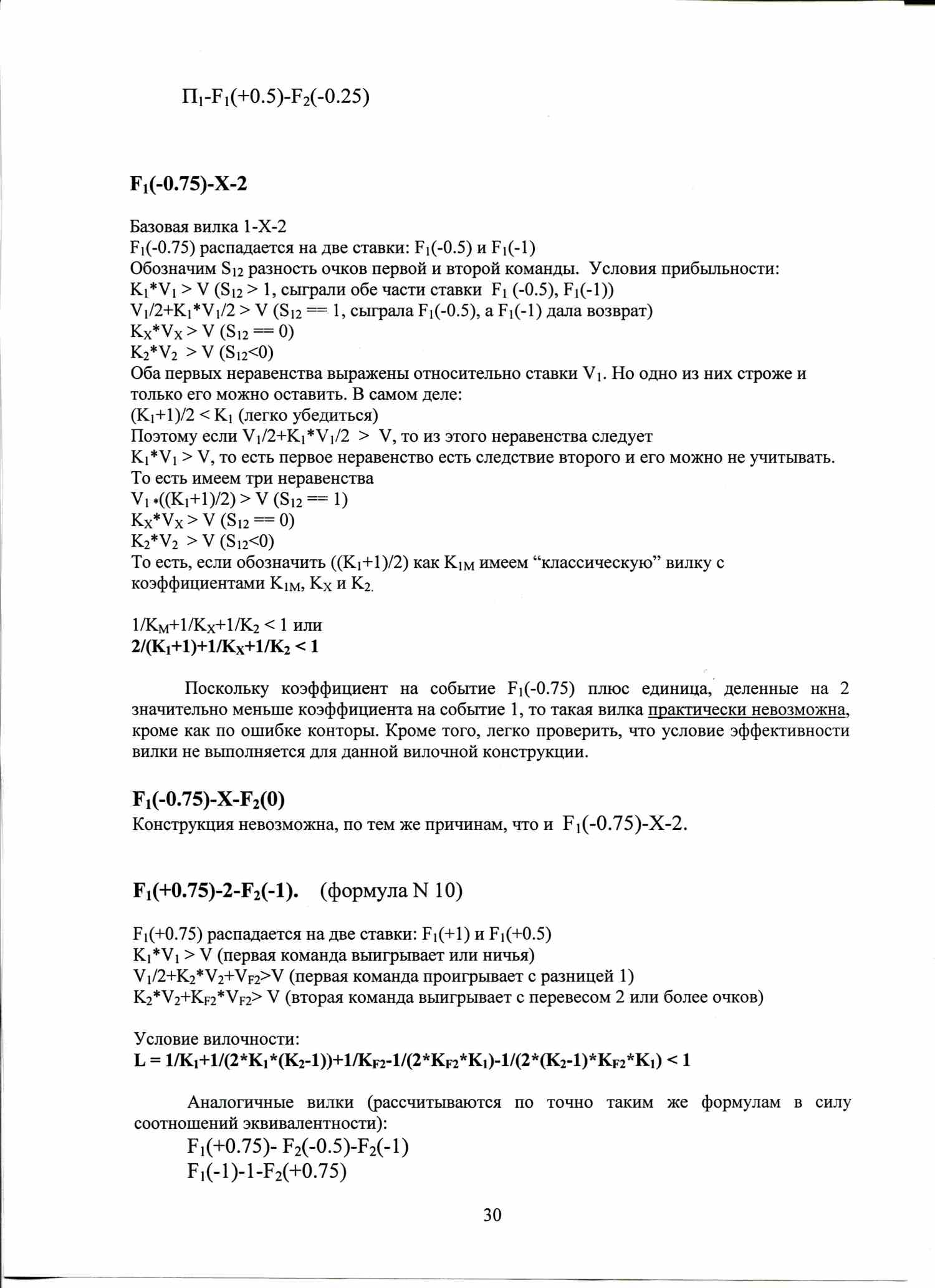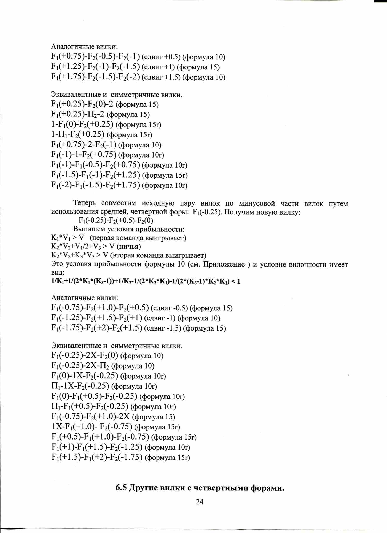 По аналогичной формуле вычисляются условия вилочности вилок с форами, тоталами, индивидуальными тоталами. Например, F1(+1)-F2(-1), или ТМ(2)-ТБ(2).