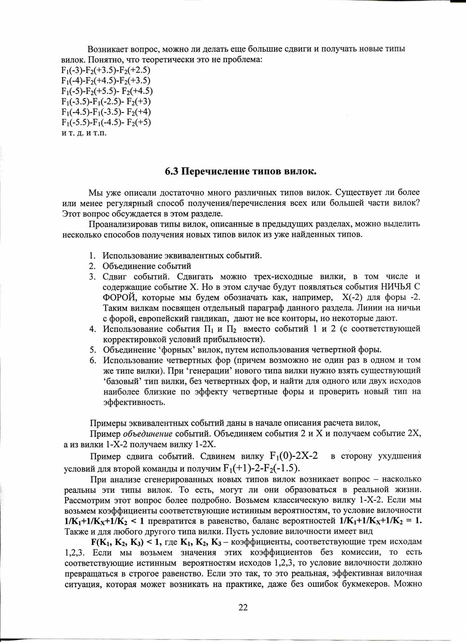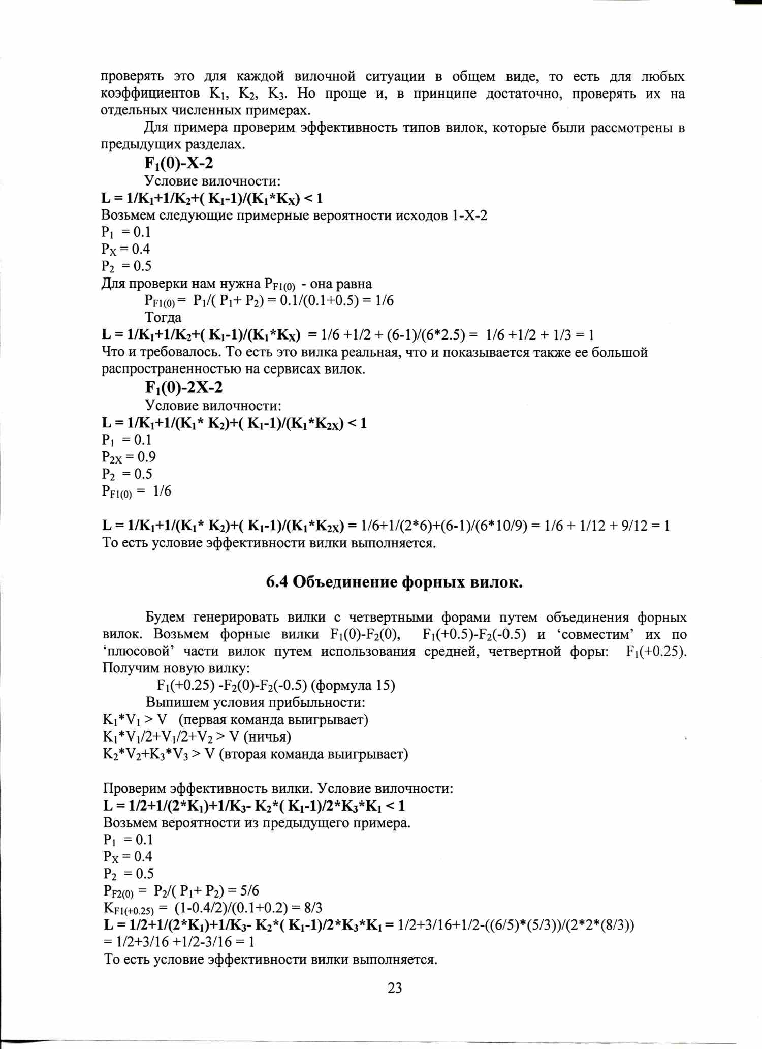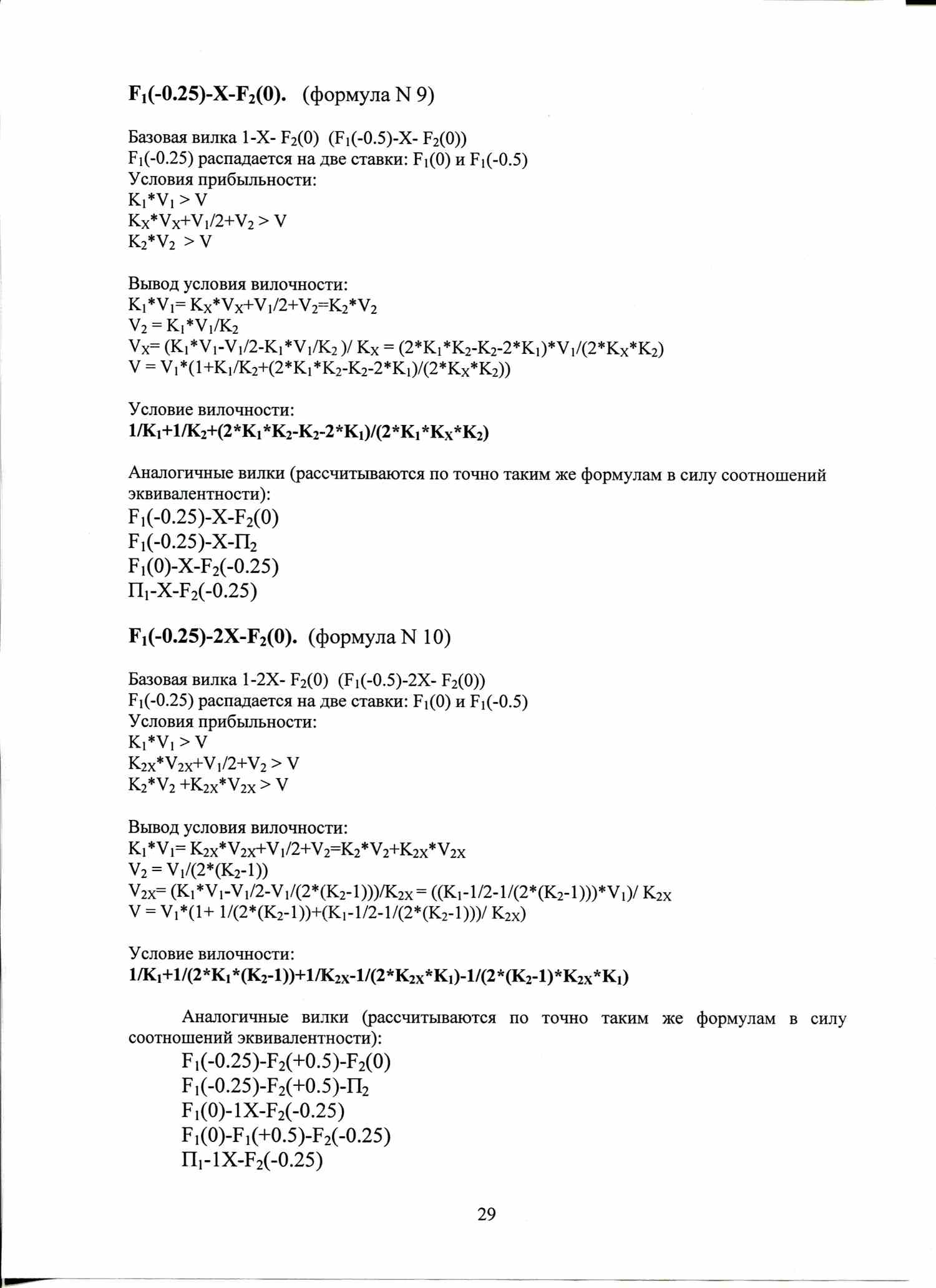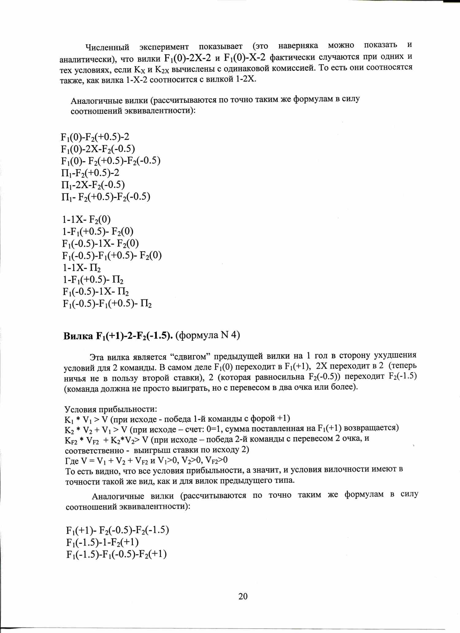 По аналогичной формуле вычисляются условия вилочности вилок с форами, тоталами, индивидуальными тоталами. Например, F1(+1)-F2(-1), или ТМ(2)-ТБ(2).