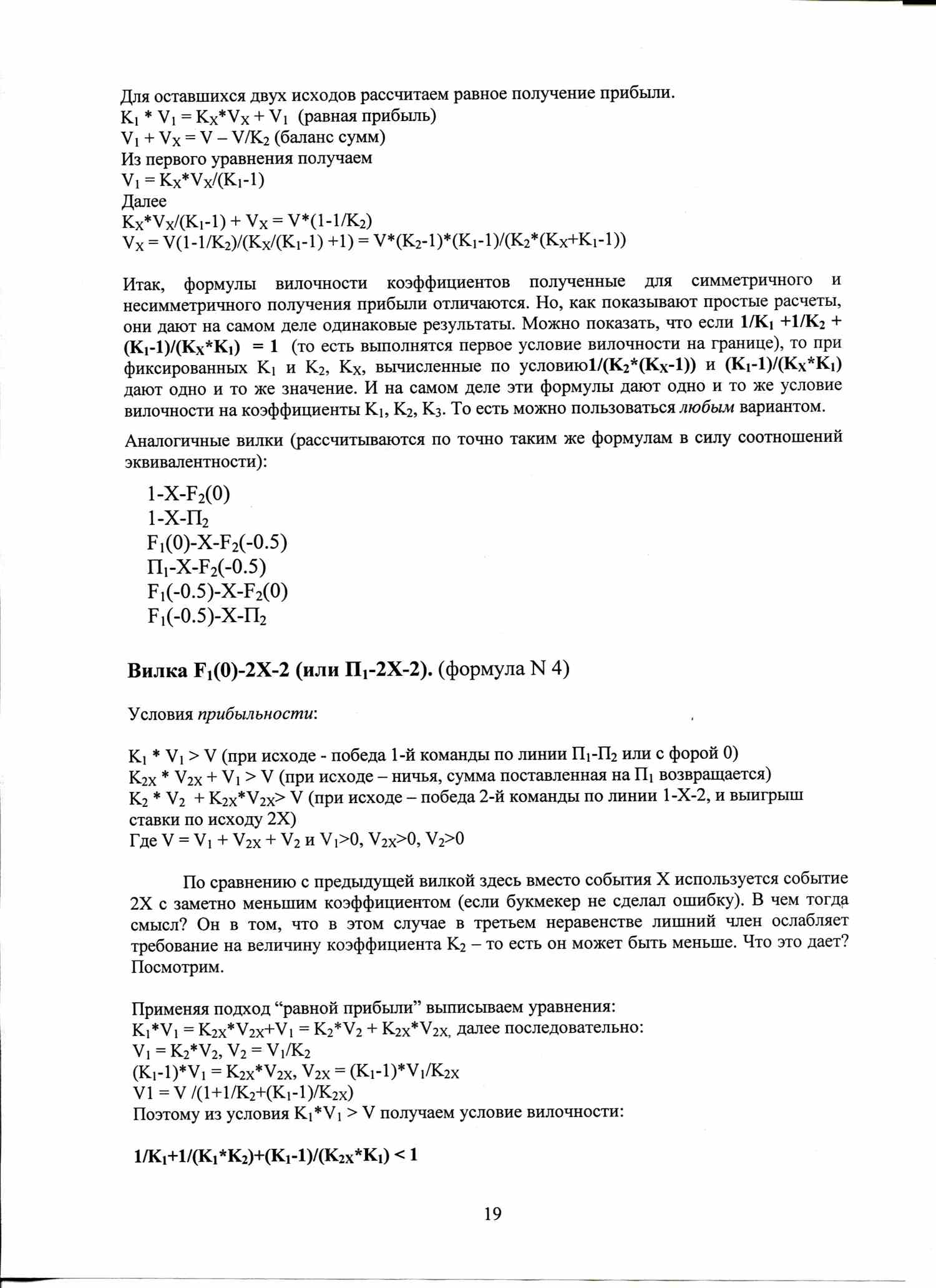Вилка 1–X-2. (формула N 2)