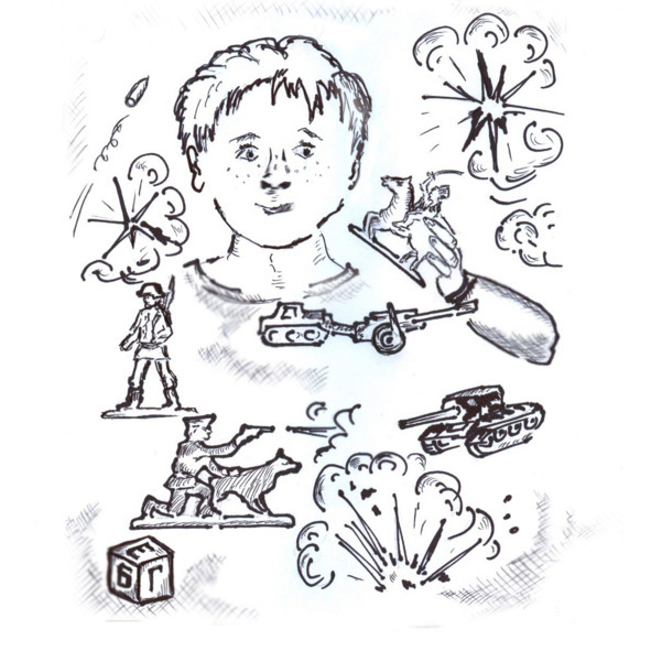 А потом следовала серия номер два с далёким собратом, до которого добирался ползком израненный оловянный солдатик, который вроде бы погиб, но всё-таки не до конца. Герой на то и герой, чтобы исполнить свою особую миссию, – вот он и оживал на некоторое время, чтобы передать в соседнее королевство весть о случившемся. Друзья пленённого принца тут же собирали свою армию – из добрых и честных новобранцев, после чего шлёпали дружной колонной, освобождая всех пленных и пострадавших. Разумеется, попутно отыскивалась принцесса, на которой мечтал жениться пупс, справлялась свадьба, раскаивались и исправлялись враги. Не все, конечно, – самых злобных вновь загоняли за шкаф. Лихие заморочки выдумывались Гришей на ходу, как и новые образы, которые он вырезал и выпиливал для своих игр.