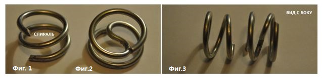 На рис. 10 представлено два устройства фиг.1 – виток винтовой спирали; фиг.2 устройство протяжённой волновой частицы двух зеркально антисимметричных витков, объединённых промежуточной S-образной петлёй. Фиг.3 вид с боку – факт визуальной неочевидности их в различии.