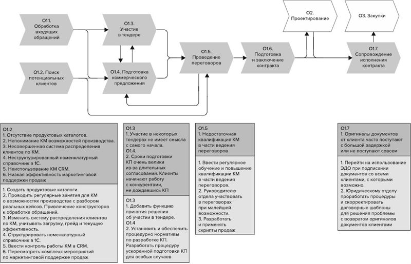 Такое расследование может вести и к побочным на первый взгляд вопросам, которые дают возможность вырабатывать совершенно неожиданные решения. Например, иногда требуется провести обучение участников процесса и привязать процессные показатели к их бонусным схемам – и процесс радикально ускорится. А иногда надо кропотливо перепроектировать сам дизайн процессной цепочки.