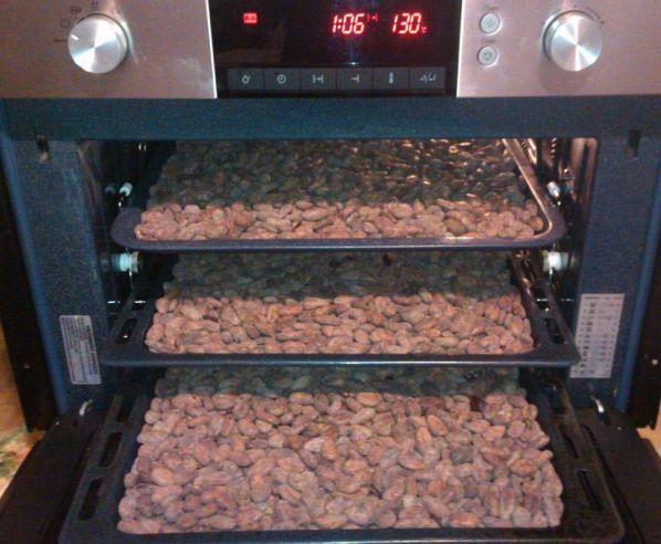 Очищенные какао-бобы надо обжарить. После обжарки они приобретут неповторимый запах шоколада.