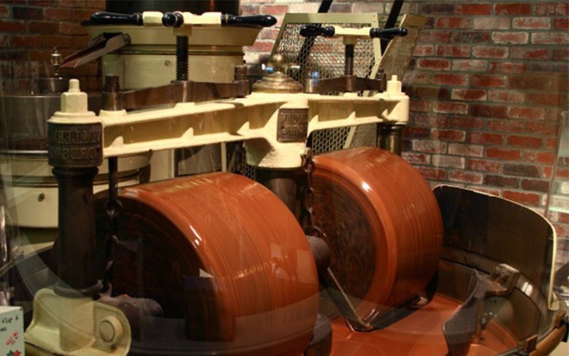 Следующий этап – это измельчение. При измельчении какао-бобы превращаются в жидкую, тягучую массу.