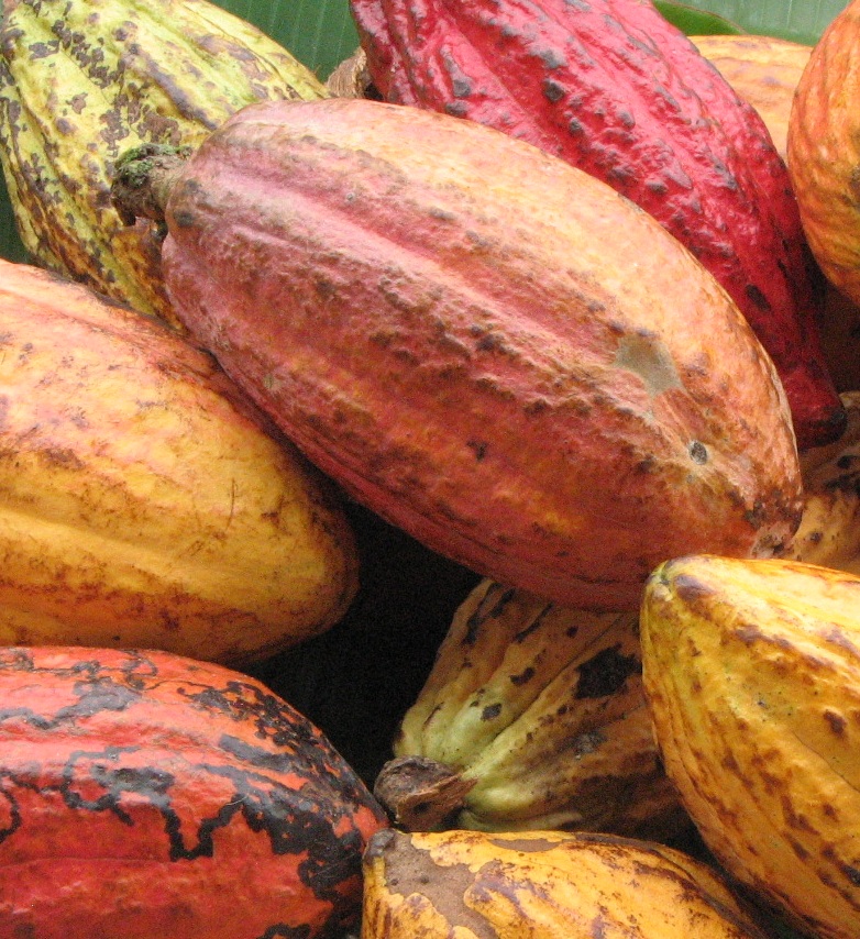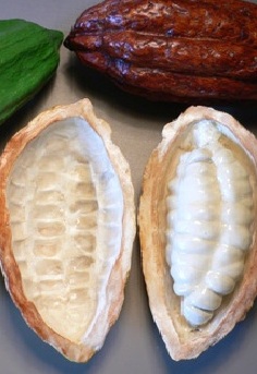 – Вот так выглядит плод шоколадного дерева в разрезе. Видишь, внутри плода спрятались семена? Это и есть бобы какао.