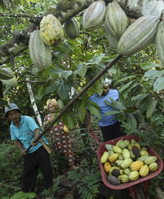 Собирают в мешки и отправляют на шоколадную фабрику.