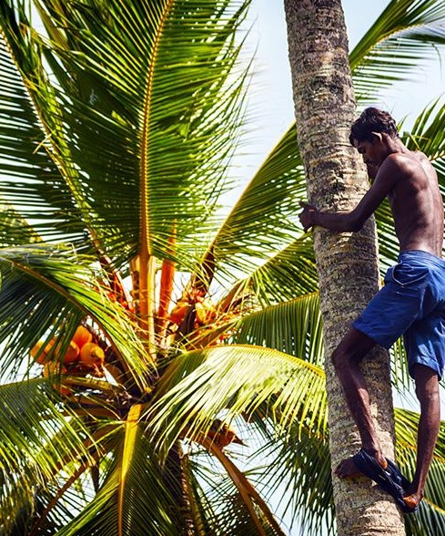– Чтобы срезать плоды, растущие высоко над землёй, на дерево придётся залезть.