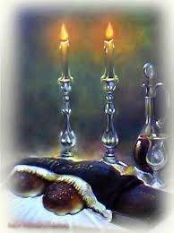 в глубокое прошлое. Неотъемлемые её атрибуты – стол, покрытый скатертью, две зажжённые свечи, хала (традиционный хлеб в форме заплетённой косы), и плод виноградной лозы.