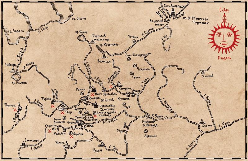 Крупные звёзды ясно горели на таком близком небесном своде. Отрок нашёл Кол-звезду, мысленно двинулся на неё, через Нагорье, на Волгу. Там стоит родимый город Углич, там его дом, отец, мать и сестра-погодка Ульяна. Два с лишним года минуло, как он расстался с ними.