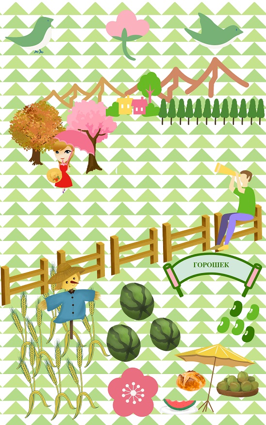 И стал ГОРОШЕК делать пушки из стручков гороха, собирать горох и складывать его в кучки.