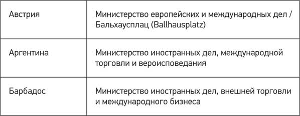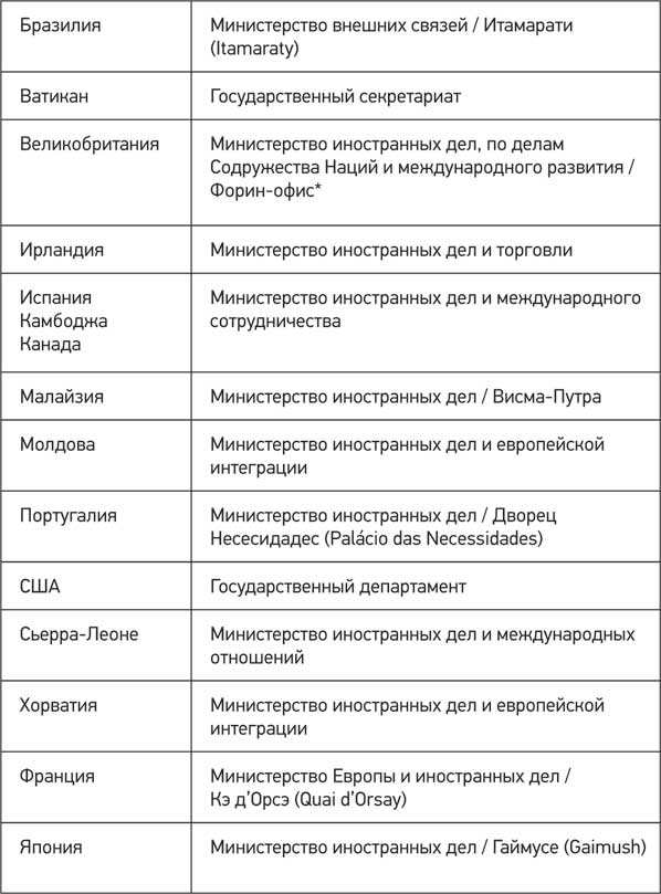 Названия внешнеполитических ведомств различных стран мираТаблица 1