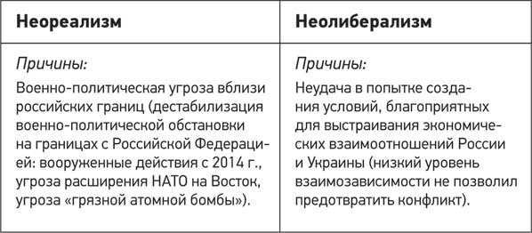 Таблица 3. Специальная военная операция сквозь призму ключевых теорий международных отношений