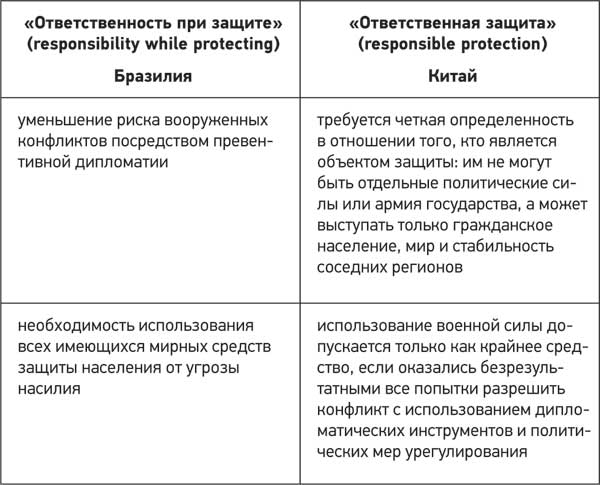 В июньском выпуске 2012 г. журнала «Китайские международные исследования» была опубликована статья, описывающая китайский подход, а именно концепцию «ответственная защита» (responsible protection).