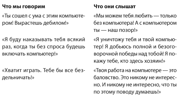 К кому больше привязан ребенок – к маме или компьютеру? Это вопрос, который иногда бессознательно тревожит родителей. Мы ревнуем ребенка к бездушной машине, но вместе с тем не готовы тратить свое время и усилия на то, чтобы увлекательно провести время с ребенком. Раньше родитель был источником счастья на фоне довольно однообразной реальности. Теперь родители могут выступать фоном для яркой, бесконечно разнообразной виртуальной реальности. Эмпирические наблюдения показывают, что, если ребенку не хватает теплых отношений в семье, любви, нежности, ласки, риск формирования различного рода зависимостей, в том числе компьютерной, многократно увеличивается. Удовольствие, которое можно получать легко и простыми способами, – это всего лишь суррогат человеческой любви, которую ребенок не знает, как добывать.