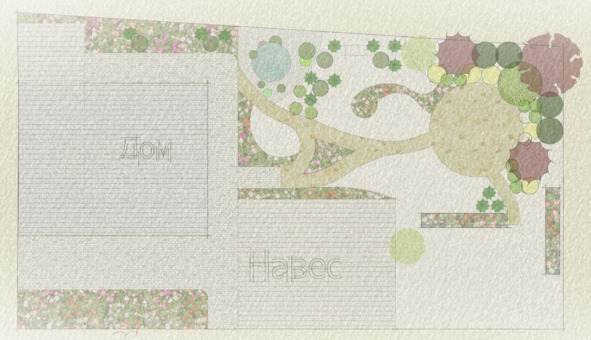 Определившись со стилем, нужно в масштабе расчертить участок, определить зоны, проложить дорожки, наметить растительные группы.