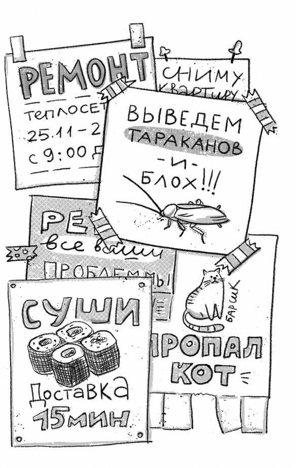 Вы замечали, сколько вокруг разных объявлений? В нашем подъезде их целая доска, и в школе тоже. Только объявления эти скучные. То воды не будет, то ноги вытирайте, то выведем у вас всех блох и тараканов. Я даже такое объявление на остановке прочитал: «Решу все ваши проблемы». С одной оставшейся бумажкой с телефоном. На всякий случай я сорвал эту бумажку. Вдруг пригодится?