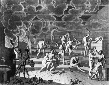 Древние скифы посередине своих войлочных юрт ставили большие чаны, которые затем наполняли водой. В эту воду они бросали раскаленные камни, они нагревали воду, которая в свою очередь превращалась в пар.