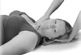 1. Для растягивания мышц шеи поднимите голову подруги так, чтобы подбородок опирался на грудную клетку (рис. 1).