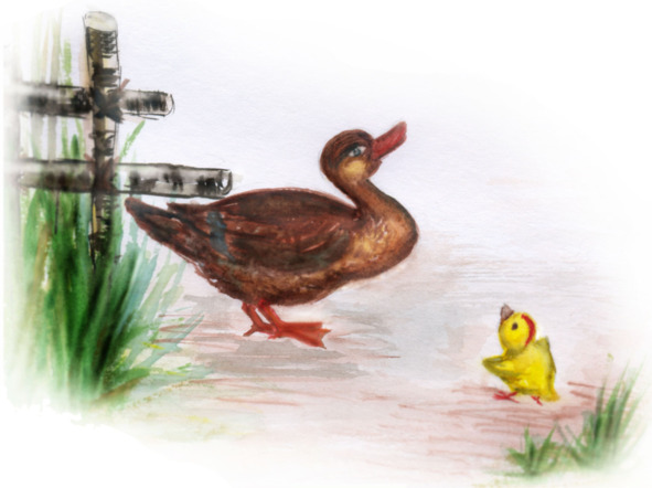 Мама-квочка огорчилась.Утка – нет, не рассердилась.«Что ж, малявка, я не зла», —И вразвалочку ушла.