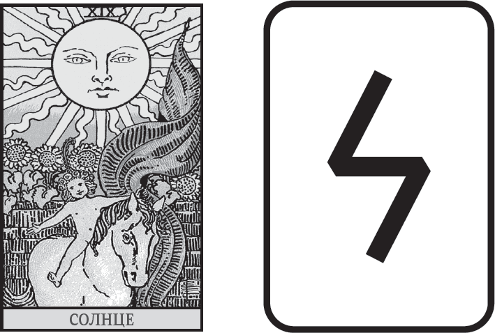 Рис. 6. Карта Таро «Солнце» и руна Соуло