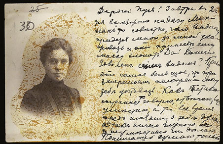 «Дорогой Пусика! Наконец получилось разрешение и я завтра выезжаю в 10 ч. веч. Итак пиши в Киев на адрес Вадима…» Письмо Нади Фишман Петру Добычину с отметкой тюремной цензуры. 1903