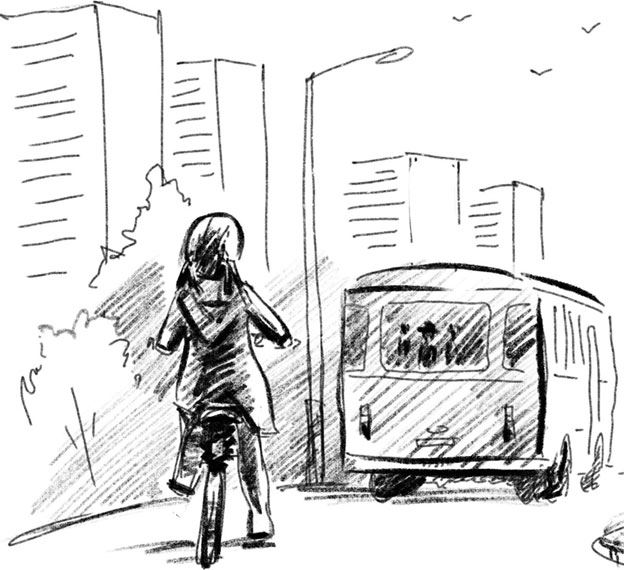 Оля смотрела, как автобус уезжает в сторону вокзала.