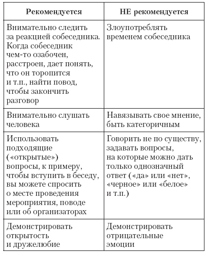 Независимо от тематики, длительности и степени официальности беседы следует обратить внимание на несколько приведенных ниже универсальных рекомендаций.