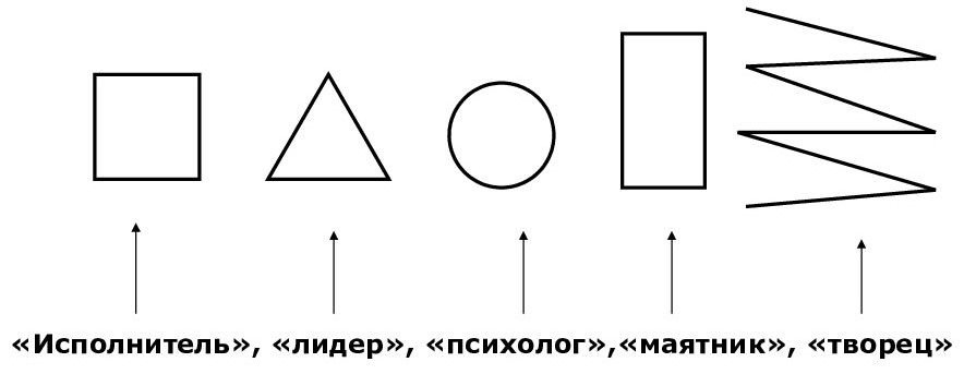 Круг, треугольник, прямоугольник, квадрат, зигзаг.