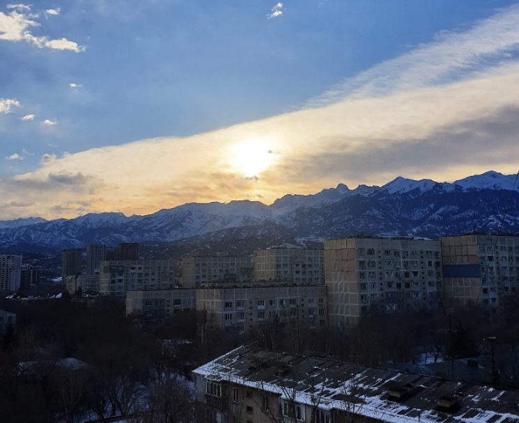 Когда живешь в Алматы, привыкаешь к мысли, что горы всегда рядом и никуда не денутся. Всегда успеем туда съездить. Конечно, есть активные жители, которые ходят в походы, катаются в горах на лыжах, санках или коньках. Но я не люблю зимние морозы. Что касается лета, надо очень рано встать, чтобы успеть до наступления жары. Короче говоря, обычно я предпочитаю оставаться наблюдателем. Зато я созерцаю горы с восхищением художника: рассматриваю острые елки на склонах, приглядываюсь к вершинам, улавливаю переливы многочисленных оттенков, с замиранием сердца разглядываю мистические облака.