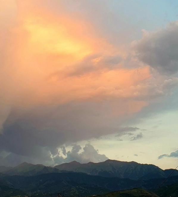 Горы всегда выглядят по-разному. Летом они зеленые и дымчато-голубые. После дождя будто прямо из холмов выныривает радуга. Часто она бывает двойная: одна дуга возвышается над другой. Зимой горные вершины обильно покрыты снегом. Ущелья контрастно выделяются темным цветом, будто причудливые веточки, написанные талантливым мастером на белом холсте. При облачной погоде особенно хороши закаты. Вечернее солнце окрашивает небо в розовые и пурпурные оттенки. Световое шоу меняется каждый день, завораживая божественной красотой.