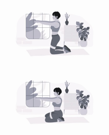 4) Махи руками с гантелями (утяжелением). Исходное положение: стоя, спина прямая, взгляд- перед собой, в руках – гантели (здесь я не советую брать большой вес. Гантели весом 0,5-1 кг вполне подойдут). Вытяни руки с утяжелителем (гантелями) прямо перед собой, на уровне плеч. Далее разведи руки в стороны, затем, с выдохом, верни руки в положение «вытянуты перед собой». Делай подход без перерыва, не опуская руки (это важно). 3 подхода по 20-30 раз. Для чего это упражнение нужно? Для красивых рук и хорошего кровообращения в плечевом поясе.
