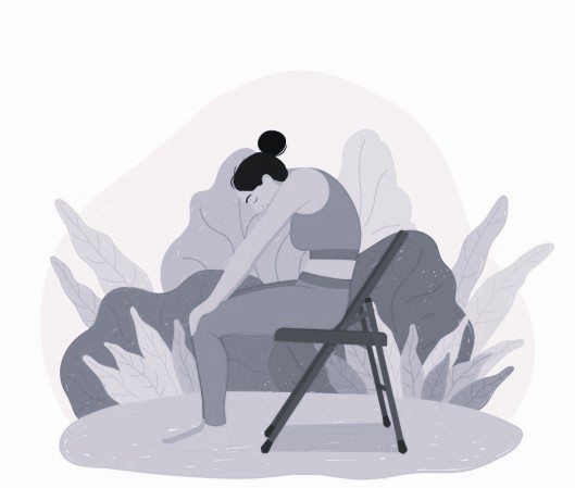 4) Расслабление и растяжка поясницы, сидя на стуле. Здесь всё очень просто: сидя на стуле, «ложимся» животом на бедра, свешиваем расслабленные руки вниз, как веревки, и расслабляемся в течение 2 минут.