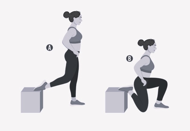 11) «Болгарский сплит – присед». Это особая, эффективная версия упражнения «выпад». Стопу одной ноги помести на стуле, другую – перед собой. Сгибай колено опорной ноги так, чтобы бедро «рабочей» ноги оказалось параллельным полу. Выполни необходимое количество повторов, затем – поменяй ноги. 3 подхода по 8-15 раз