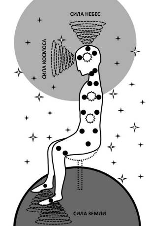 Сила Космоса является потоком космической ци. Человеческое существо считается наивысшим проявлением космической высшей сущности, способным осознанно накапливать в себе космическую ци. Сила Космоса поступает в микрокосм человека через точку между бровями («третий глаз»).