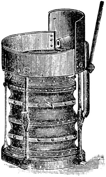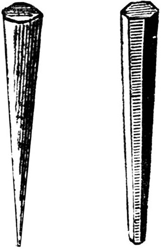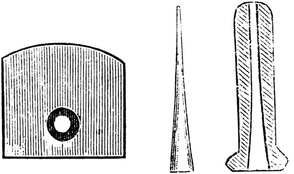 Если нет дубового бруса, то можно употребить березовый или сосновый, в верхний конец которого для большей прочности загоняют железный бугель[4].