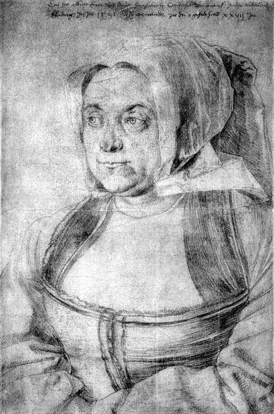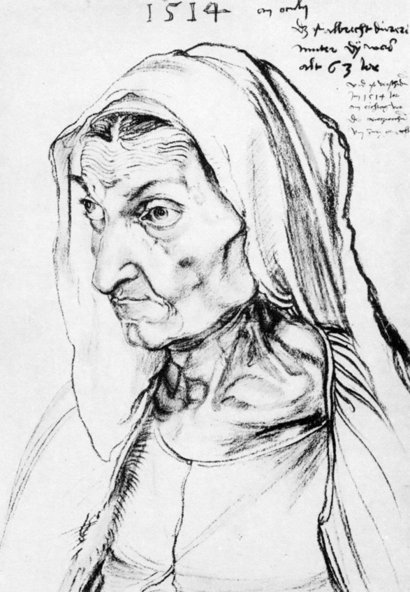 Его друг акцентирует свое внимание на том, что Агнесса была жадна, ревнива, плохо смотрела за мужем, с сестрой изводила людей вокруг себя. Он намекнул, что эти две мерзавки извели прекрасную женщину – мать Дюрера, которая так много дала сыну в жизни, и что та умерла не от рака, а от чего-то непонятного, на глазах превращаясь в скелет, обтянутый кожей. Дюрер наблюдал за этим с каким-то состраданием и вместе с тем с какой-то холодностью патологоанатома. Это то, что могут делать только экспрессионисты. Он рисовал мать в момент предельности, когда уже очень-очень тонкая грань отделяла ее от полного истлевания. Он с такой жесткостью показывает эту некогда красивую женщину, переродившуюся в некое существо.