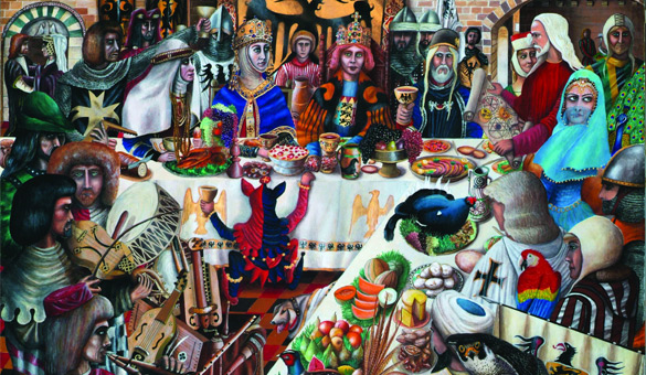 PICTURE 3. One of the most widespread customs in the English Middle Ages was the Christmas celebration with big banquets, whose main course was a living peacock . This beautiful bird was killed and carefully skinned, so as not to ruin its plumage, it was then stuffed with eggs and spices and roasted. It was finally “coated” with its own skin and adorned with gold. Once the Pilgrim Friars arrived to America they almost immediately replaced the peacock with the turkey, which became the culinary symbol of the American Christmas.