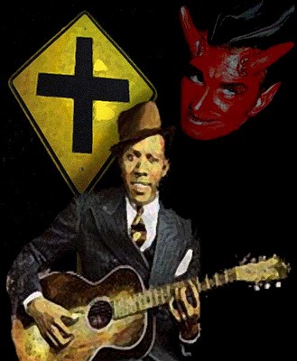 " Il Diavolo e Daniel Webster" di Stephen Vincent Bennet del 1936. E che dire di uno degli illustri predecessori di Robert Johnson, il musicista nero TOMMY JOHNSON che, triste e alcoolizzato e sulla scia dell' altrettanto fuso CHARLIE PATTON se ne andava in giro per il Mississippi urlando la sua BIG ROAD BLUES? E se proprio vogliamo dirla tutta, non fu ancora Son House a mostrare la " familiarità " tra la storia di Robert Johnson e quella del bluesman di St .Louis PEETIE WHEATSTRAW, che si autoproclamava " Figlio legittimo di Satana?". Infine, se vogliamo attingere alle storie di Casa Nostra,che ne dite di Nicolò Paganini e di molti suoi brani che si diceva " gli fossero stati dettati dal demonio" ? Insomma, fare di un acquisito talento nato da un duro impegno e da una predisposizione innata una Leggenda, e ricamarci su per vanagloria da parte di Robert Johnson e poi per puri fini commerciali da parte delle etichette che lo produssero, non fu difficile. Peccato che poi il musicista DANNATO si sia strozzato da solo alimentando le sue stesse favole!