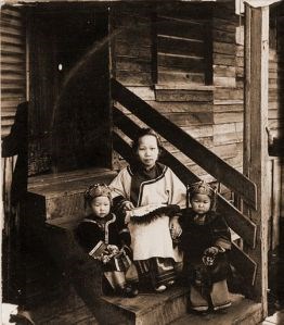 La historia de las pequeñas esclavas secuestradas a las familias, generalmente campesinas, para ser enviadas a América como prostitutas inicia en 1865. Fue la Mafia China, con acuerdos directos con el gobierno Chino, en establecer y mantener en América con el fin de evitar “mezclas” entre Chinos y Americanos. Más tarde se extendió a los yankiees, que podían gozar de una niña China en adecuadas partes de atrás de los negocios por unas monedas. A diferencia de los compatriotas hombres, que después de una docena de años de duro trabajo podían volver a su tierra, las esclavas Chinas morían en América sin haber vuelto a ver el sol. Vivian en una completa separación con el exterior, en celdas aisladas, cuidadas por una comadrona que a veces las ayudaba a parir o a librarse de los varios hijos ilegítimos. Salían de sus celdas por muerte después de haberse unido con miles de hombres. La mafia se libraba de ellas haciéndolas caer por la noche en el rio o cimentándolas bajo tierra. Aquí una joven mujer de Hong Kong con vestidos tradicionales en 1860.