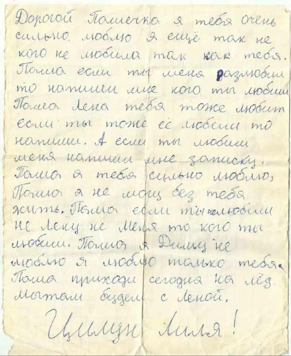 Помню, как ждал ответа с замиранием сердца, наблюдая, как Лиля выводила буквы и слова, предназначенные мне. Интрига, а что же в письме, дразнила, окрыляла, дарила радужные надежды. Наконец, получал аккуратно сложенный листочек, где таился целый кладезь чувств «моей невесты».
