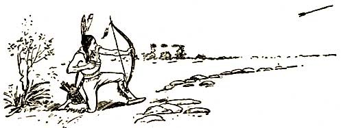 Вор-ра-пи берет лук, натягивает крепкую жилу тетивы, спускает ее. С звенящим свистом срывается с тетивы стрела и, прорезывая накаленный воздух, скрывается вдали. Еще и еще стрела. Время идет, медленно проходит солнце по небосклону, с отчаянием глядит народ на уверенное, мужественное лицо своего любимца, на голове которого колеблются орлиные перья, а сзади, над гетрами из овечьей шкуры, развевается лисий хвост.