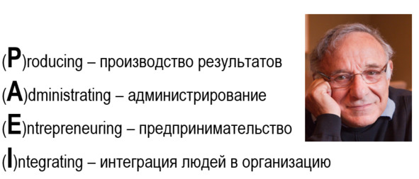 Согласно концепции PAEI [4], для успешной работы в команде хороший руководитель должен блестяще исполнять как минимум одну управленческую роль, при этом на приемлемом уровне владеть остальными. Другими словами, разница между успешным управленцем и посредственным менеджером состоит в том, насколько хорошо он может исполнять отдельные функции. Эффективный менеджер должен быть гибким, уметь адаптироваться к новым ситуациям и выполнять функции, которые соответствуют требованиям момента.