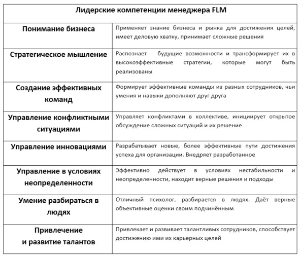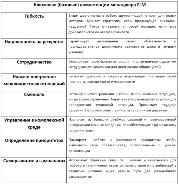 Начну с ключевых (базовых) компетенций менеджера «первой» линии – FLM.