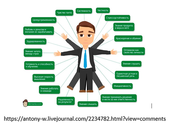 Интересная информация о наборе качеств, которыми должен обладать менеджер, представленная в виде нижеследующей картинки.