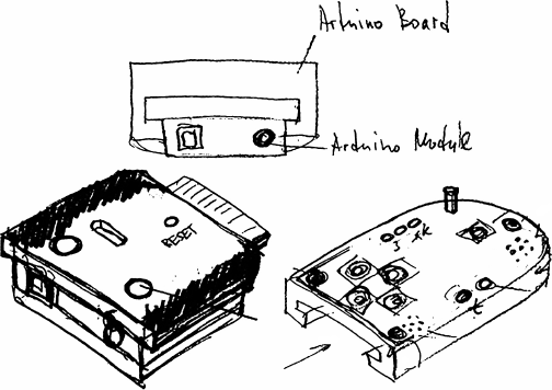 Рис. 1. Один из эскизов А. Казанцева: картридж Arduino и модуль Лаборатории ScratchDuino