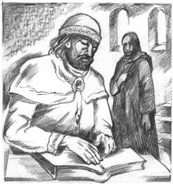 – Это славянские буквы, – сказал Владимир, – их придумали наши апостолы – Кирилл и Мефодий. Нашлись хулители, которые сказали, что не следует иметь своих букв другим народам, кроме евреев, греков и латинян, потому что на этих языках были надписи на кресте Господнем. Услышав это, Римский Папа осудил хулящих славянские книги и сказал: «Да исполнится слово писания – пусть восхвалят Бога все народы». Вот здесь мое княжество. Когда-нибудь я умру. Мои города и угодья примет новый владелец. Но это я унесу с собой. Похожая зала есть в другом моем городе – Любомле. Здесь и там я принимаю князей. И тебя вот.