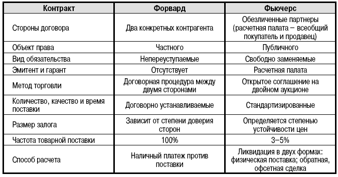 Основные различия между форвардным (внебиржевым) и фьючерсным контрактом